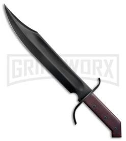 The Cold Steel 1917 Frontier Bowie is a fixed blade knife for hunting and tactical operations if necessary. The full tang 1085 carbon steel, clip point blade is heat treated for hardness. The handle features an “S” shaped black finished stainless steel guard. It comes with a black leather belt sheath and steel fittings.