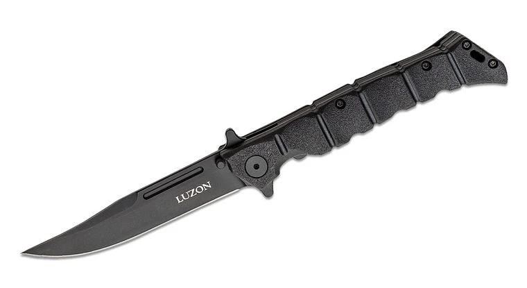 Lynn C. Thompson’s love of the Filipino Martial Arts inspired him to develop the Luzon Folders. Drawing inspiration from several balisongs in his collection, but functioning as a flipper, the Luzons are a politically correct alternative for those who are unable to legally own balisongs. The Luzon’s blades are comprised of 8Cr13MoV stainless steel, and expertly hardened to 57-58 Rockwell and feature sharp, strong, points with just enough belly to make them equally useful for cutting and slashing. You’ll be dreaming of the Philippines once you experience the Luzon’s bamboo-inspired handles, featuring concave segments that offer countless comfortable grip options. Made of glass-filled nylon (GFN), the Luzon’s handles are impervious to the elements, and are unlike any handle Cold Steel has ever made before.
