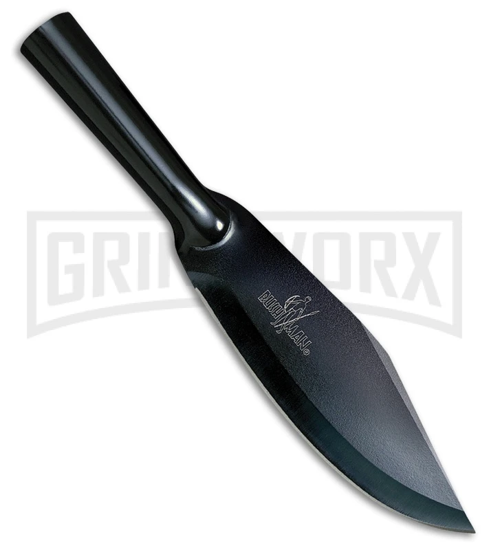 The Cold Steel Bowie Bushman Spear Attachment can double as a fixed blade knife or a spear. Either way it works well on camp outs. The full tang SK5 carbon steel, clip point blade has a black finish. The handle is made of carbon steel that is hollow. It comes with a Black Secure-Ex belt sheath and a ferro rod.