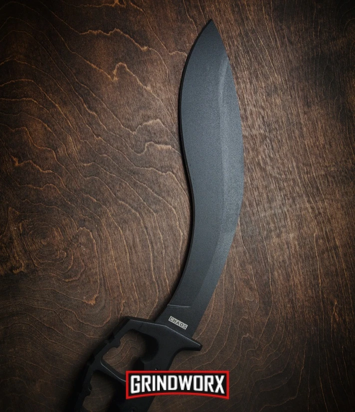 The Chaos Kukri is a large trench knife with a thick SK-5 carbon steel blade that has an exaggerated S-curve and razor sharp edge for maximum chopping power. Cold Steel drew inspiration from the classic battlefield born trench knives of both World Wars in the “D” ring guards, made from reinforced 6061 aluminum. At the base of the handle is a thick 1055 carbon steel pommel, which matches the epic size of the Chaos Kukri fixed blade.