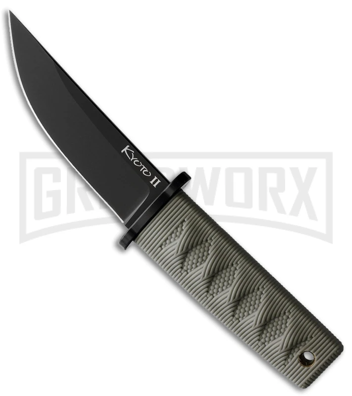 This Kyoto II from Cold Steel has an olive drab green handle with a black finish drop point blade.