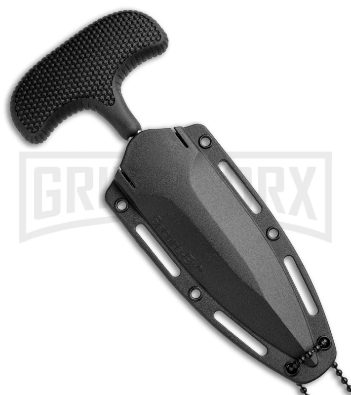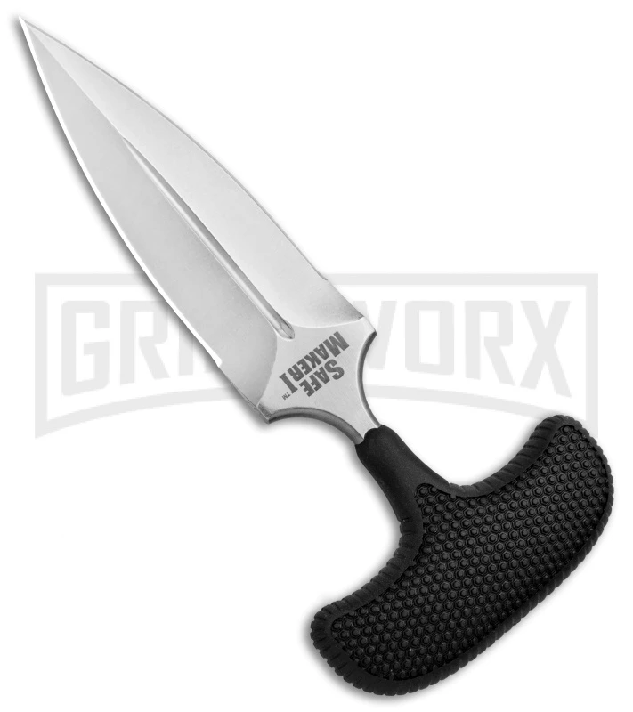 Cold Steel has been making push knives for a quarter century. In those twenty five years they’ve continually been refining their designs. The Safe Maker push knives, designed by Lynn C. Thompson, are without doubt the finest commercially made push knives in the world. The blade, shaft, and Â’TÂ’ shaped tang are all drop forged from one piece of AUS-8A stainless steel. This process, though costly, eliminates any unwanted sharp edges or surfaces that would irritate the hand or fingers when the knife is clasped in a closed fist, and it produces a better knife, since the subsequent vacuum heat treatment and sub zero quench, renders the blades virtually unbreakable.